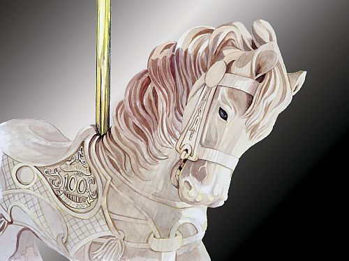 A beautiful carved wooden carousel horse at Santa Monica Pier commemorates the 100th anniversary, so I painted it in keeping with the sophistication of color.