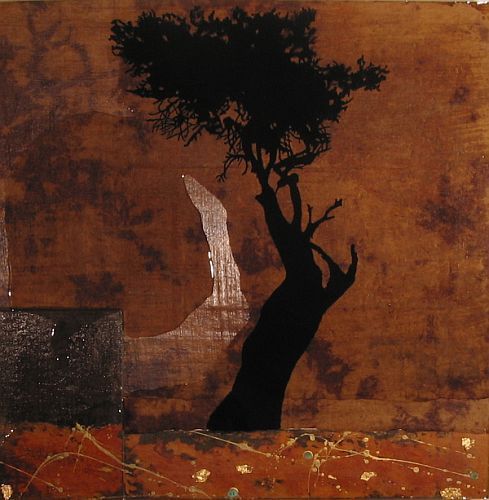 “Begin” - Danny Hughes 2009, Mixed Media, Collage, Oil, Resin on Wood Panel, 24" x 24" - Available