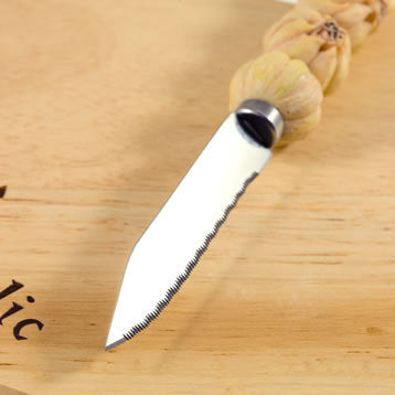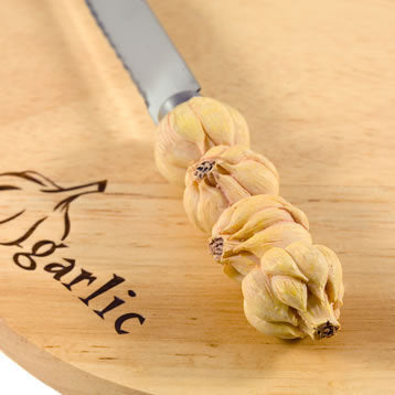 This unusual and really cute set reflects the current trend for all things country kitchen, and would make a unique gift for a cooking lover. The set features a small wooden chopping board in the shape of a garlic bulb and an adorable knife with a handle showing four cast and painted garlic bulbs. The knife is perfect for garlic - as you might imagine - with a short serrated blade. A super addition to any kitchen!
